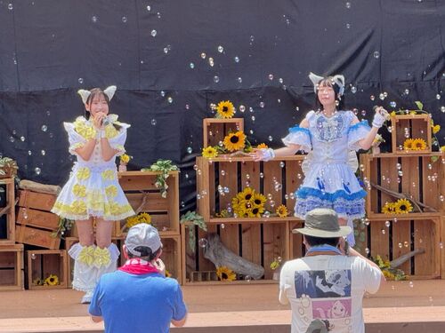ボッチ東京ドイツ村を堪能する。 11時になり、ベイビーウルフのステージが始まる。 曲はメンバーのいろんな組み合わせで3曲、そして間にMC・自己紹介・撮影タイムを挟んで、メンバー全体で1曲、それで30分ぐらいの構成である。 全体でシャボン玉を飛ばす演出…